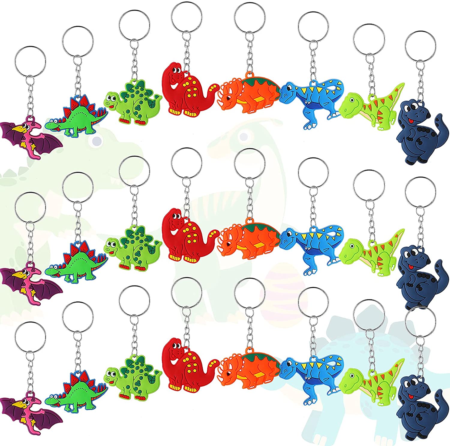 24 Pieces Dinosaur Party Favors PVC Dinosaur Keychains Dinosaur Bracelets Charms Keychains for Dinosaur Birthday Party Favors Goodie Bag Fillers Supplies