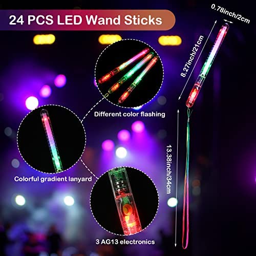 24 Pieces Flashing LED Wand Sticks with Lanyards Light up Police Wands Light Glow Wand Stick Multicolor LED Party Wand for Birthday Halloween Christmas Party Favor, Batteries Included