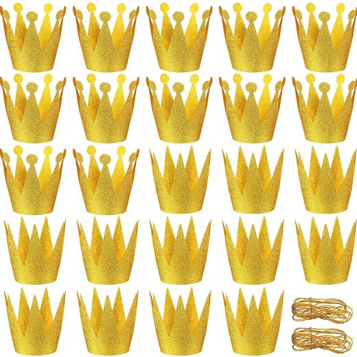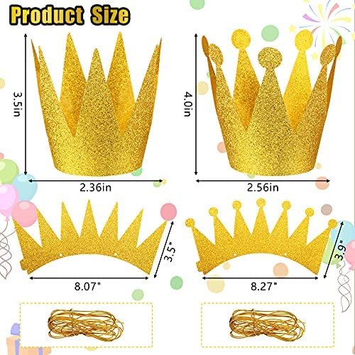 24 Pieces Gold Crown Hats Paper Crowns for Adults Birthday Party Gold Paper Crown Glitter Gold Crown Party Hats King Party Favors for Birthday Party Wedding Celebration Decoration