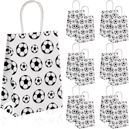 24 Pieces Soccer Party Favor Bags Soccer Goodie Bags Paper Soccer Print Treat Candy Gift Bags for Kids Soccer Themed Birthday Party Supplie Decorations