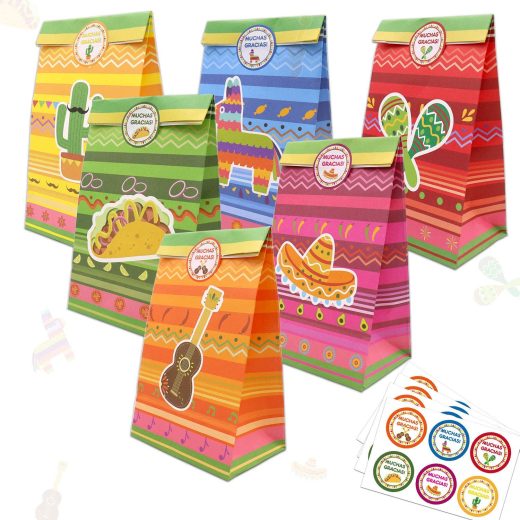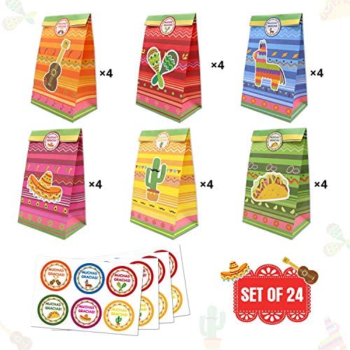 Fiesta Party Supplies: Package includes 24 pack fiesta goodie candy treat bags with 24 pcs matching thank you stickers. Featuring 6 different Mexic…