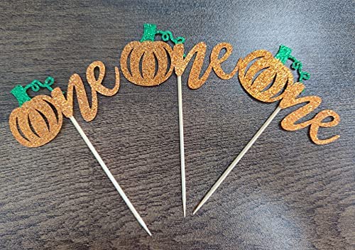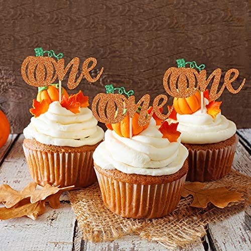 24Pcs Glitter Pumpkin One Cupcake Toppers- Pumpkin Birthday Baby Shower Party Decorations,Pumpkin 1st Birthday Cake Decorations,Fall 1st Birthday Party Cupcake Picks,Pumpkin Cupcake Toppers