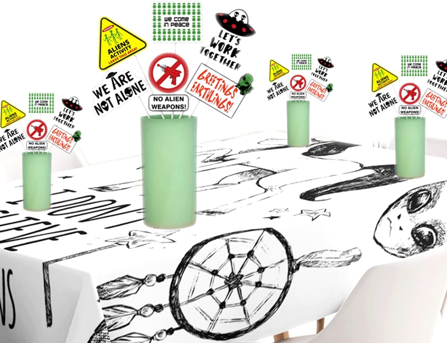 24pcs(6 Styles) Alien Theme Table Centerpiece Sticks Decorations UFO Alien Table Toppers Decorations We are Not Alone for Kids Girls Boys Adults Birthdays Baby Shower First Birthday Party Supplies