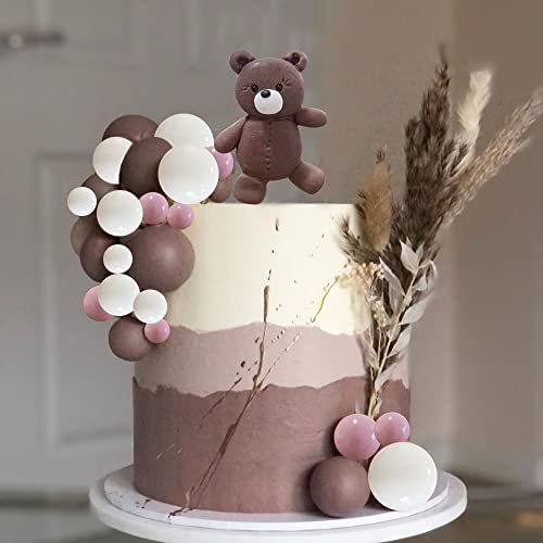 PACKAGE – Each package includes 25 pieces bear balls cake toppers, 1 piece clay bear cake topper, 8 pieces brown balls of various sizes, 8 pieces w…