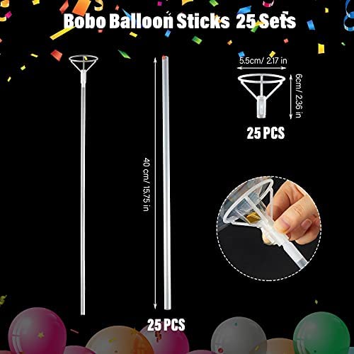 25 Pieces Bobo Balloon Sticks 16 Inch Clear Transparent Balloon Sticks with Cups Clear Balloon Holder for Bubble Transparent Balloons Birthday Party Christmas Wedding Anniversary Indoor and Outdoor
