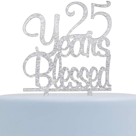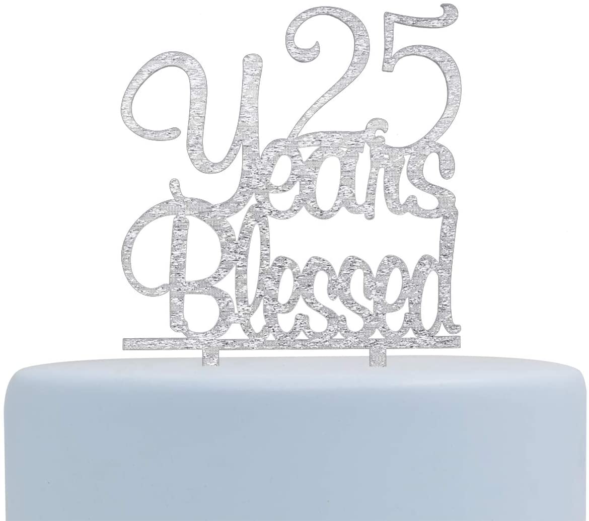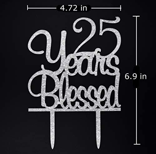 25 Years Blessed Cake Topper- Happy 25th Birthday /Anniversary Party Decorations (Silver)