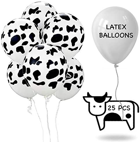 Cow printed balloon can be used anytime and anywhere, easy and fast to use; suitable for every one who loves balloons; you can add some fun to your party with balloons The balloon is made of high-quality latex material, the thick material makes it not easy to explode when its inflated, safe to be used; you can safely fill them with air, water or helium to achieve your desired effect Package includes: each set comes with 25 pieces of cow printed balloons in black and white, each of which is about 12 inches in length Tested and long lasting inflated duration! Cow Print balloons will be the perfect fit for your kids party whether throwing a cowboy theme party, farm theme party, or any birthday party Every product is carefully checked before we ship out. Any quality problem or suggestion, welcome click seller contact button in your account to email us if you have any question, we will solve it at once