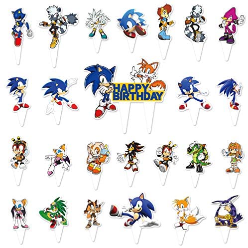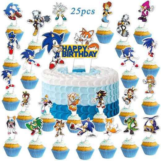 25PCS Video Game Cupcake Toppers Hedgehog Cake Toppers for Kids Birthday Party Supplies
