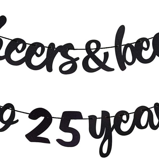 Package Includes Pre strung & ready to hang black glitter cheers & beers to 25 years banner with a beer mug of each end.Do Not need any handmade,it…