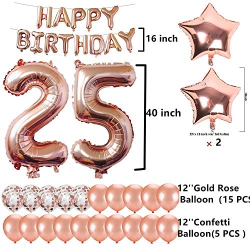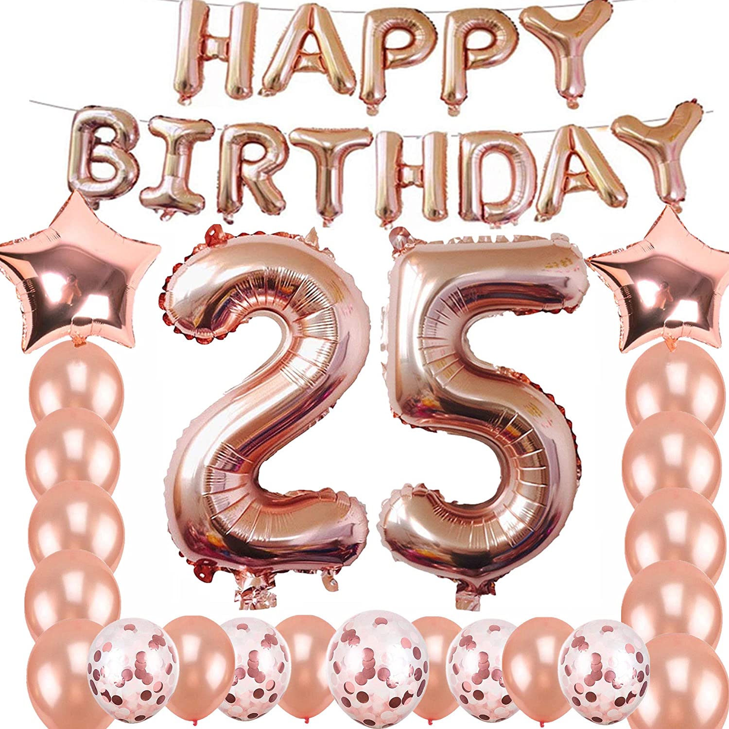 25th Birthday Decorations Party Supplies, Jumbo Rose Gold Foil Balloons for Birthday Party Supplies,Anniversary Events Decorations and Graduation Decorations Sweet 25 Party,25th Anniversary