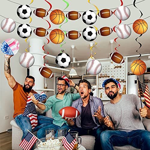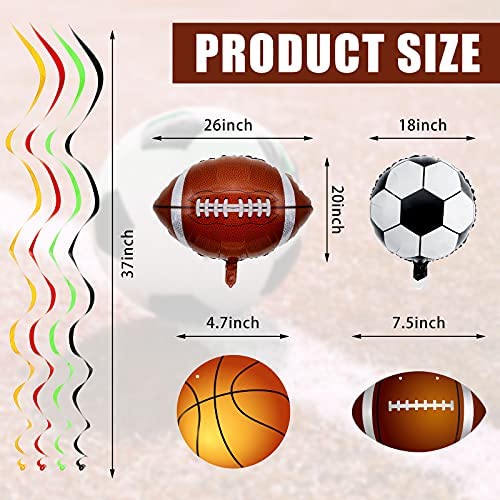 26 Pieces Sports Themed Party Decoration Include 2 Pieces Sports Theme Banner 16 Pieces Sports Hanging Swirl 8 Pieces Sports Aluminum Balloon for Sports Themed Party Birthday Party Supplies Ball Fans