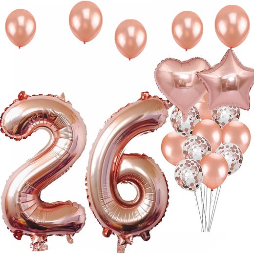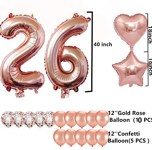 26th Birthday Decorations Party Supplies, Jumbo Rose Gold Foil Balloons for Birthday Party Supplies,Anniversary Events Decorations and Graduation Decorations Sweet 26 Party,26th Anniversary