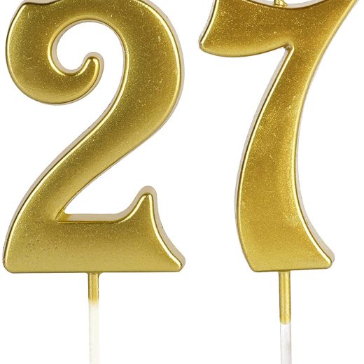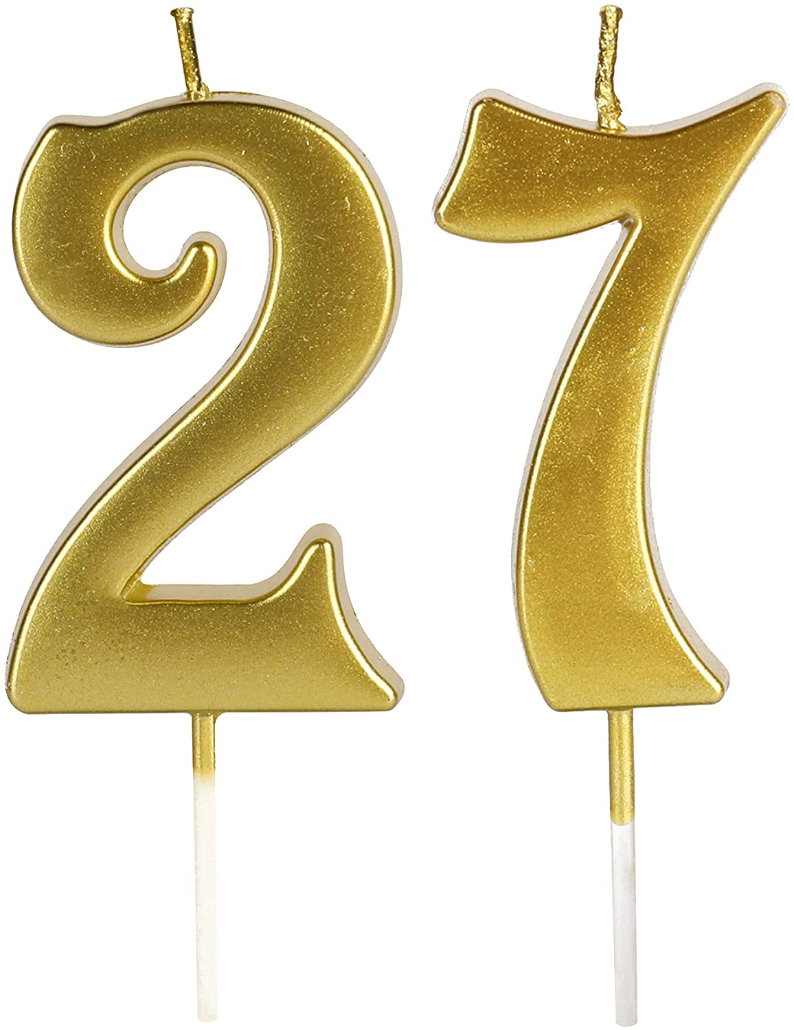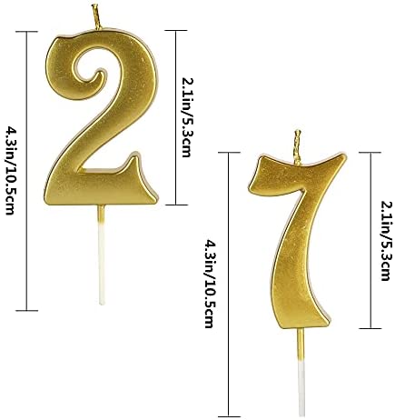 27th & 72nd Number Birthday Candles for Cake Topper, Number 72 27 Glitter Premium Candle Party Anniversary Celebration Decoration for Kids Women or Men, Gold