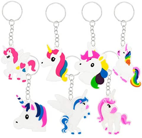 VALUE SET: Our Valentines classroom exchange party favors set includes 28 PVC unicorn keychains for kids. The unicorn keychains have 7 different cu…