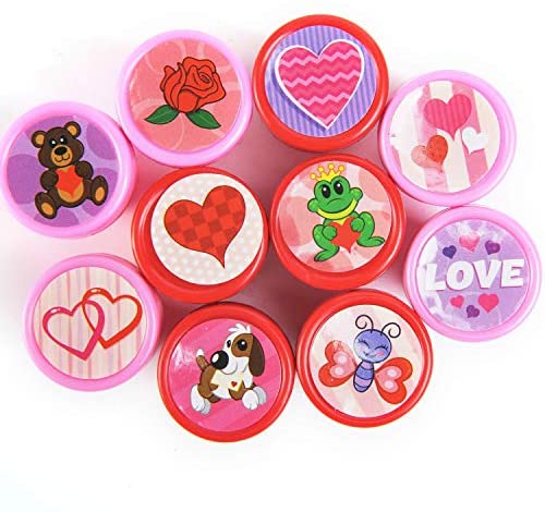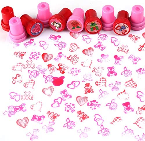 VALUABLE PACK: Our Valentines classroom exchange party favors set includes 28 stampers for kids which come with 10 mixed designs, 28 translucent red hearts case and Valentine cards which come with 4 cute designs FUN SET: Valentine designed stampers are pre-filled into translucent plastic red heart shells with thick paper heart shape valentine’s cards. Surprise your classmates or students with this Valentines Day card using our stamper assortment in the school activities! You can also tape a stamper to your existing Valentines Day cards to make it extra special IDEAL GIFT: Assorted stamp designs include different heart shapes, lovely bears, bees, dogs, roses and more. And festive heart shape valentine card fits the season of hearts! A perfect gift for classroom parties, activities and exchanges CHILD SAFE: Non-Toxic. Meet US Toy Standard. Safety test approved CUSTOMER SATISFACTION: Providing a 100% satisfaction experience is our main priority to our customers. Feel free to message us through “contact sellers” if products dont meet your expectations. The celebrations start at JOYIN!