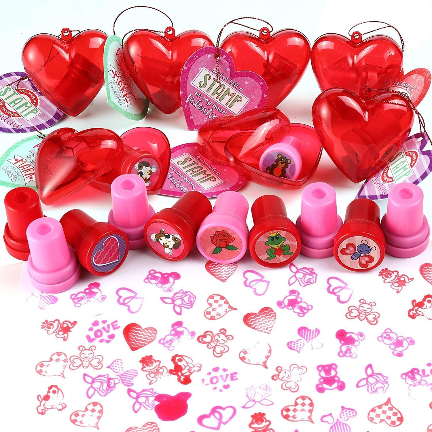 28 Pcs Kids Valentines Day Stampers Set Filled Hearts and Valentineu2019s Day Cards for Classroom Exchange, Kids Stampers Party Favors for Gift Exchange, Game Prizes and Carnivals Gift