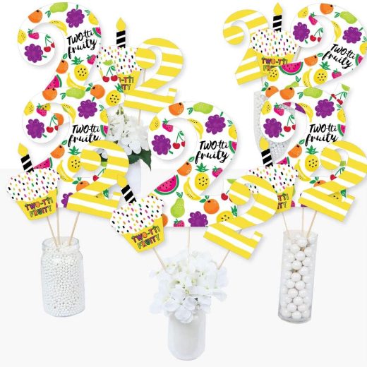 2nd Birthday Two-tti Fruity – Frutti Summer Second Birthday Party Centerpiece Sticks – Table Toppers – Set of 15