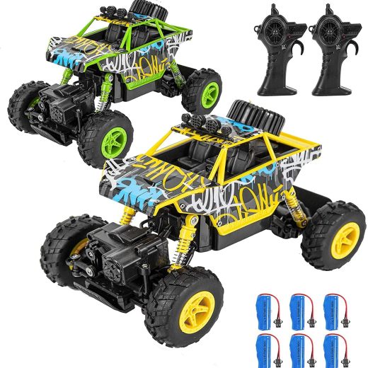 All-terrain RC carsRemote control car with 2 powerful motors, can easily climb 45-degree slope, run fast for different terrains. Equipped with independent shock absorbers and head bumper, making it shockproof and anti-broken even if crash into rocks. Kids and freely enjoy driving It anywhere.