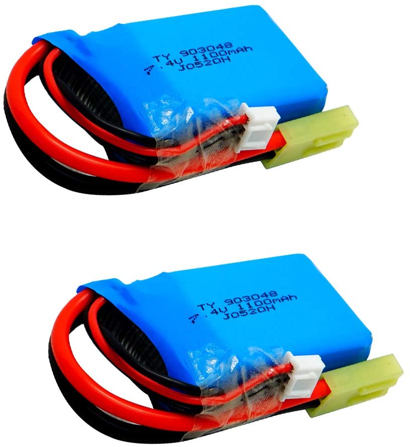 2pcs 7.4V 1100mah 20C LiPo Battery Small Tamiya Plug for PXtoys 9300/9301/9301-1/9302/9303/9303-1 1/18 Rc Car