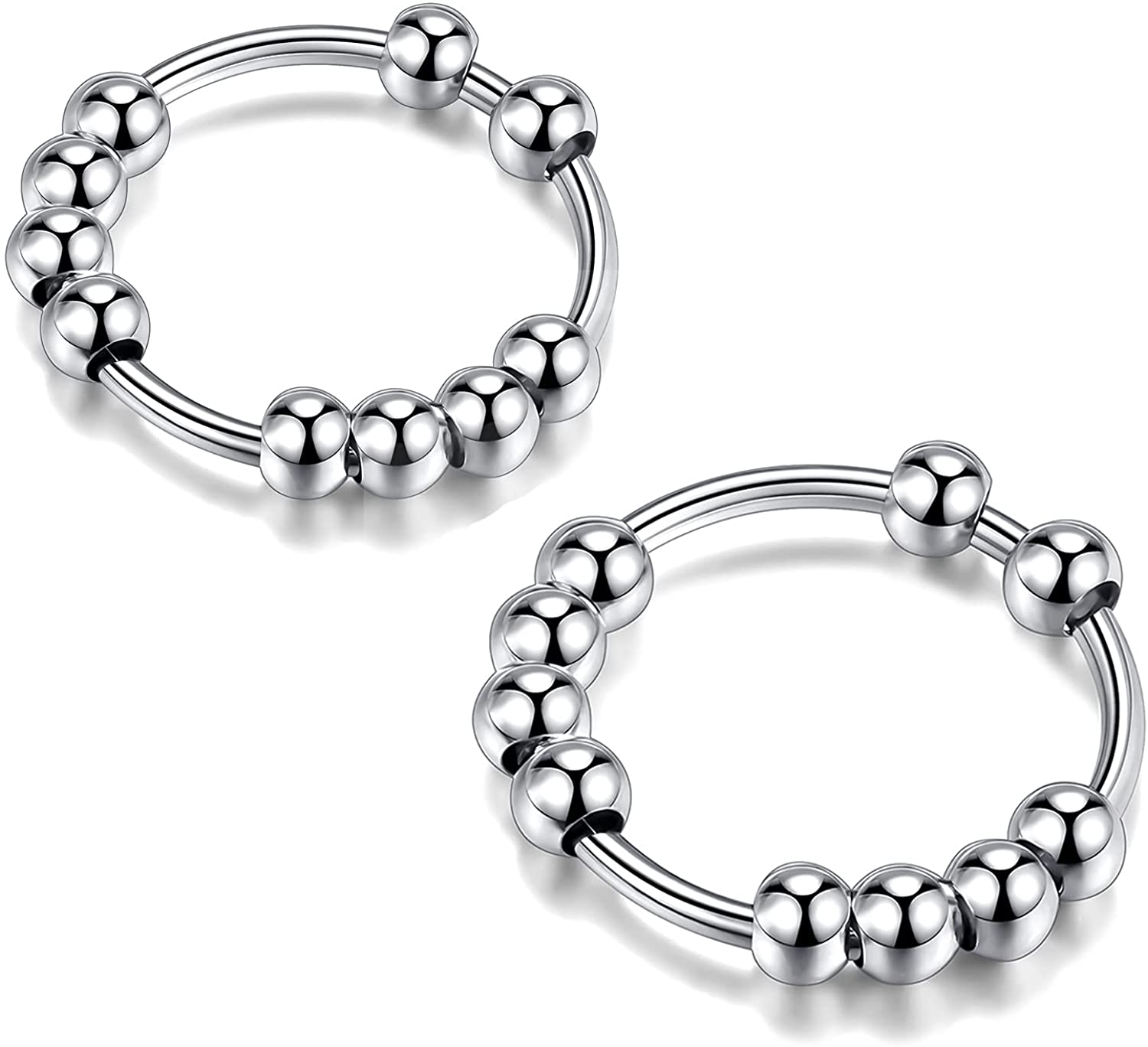 2Pcs Anxiety Ring for Women Spinner Anti Anxiety Fidget Ring with Beads Rings for Women Men Boys