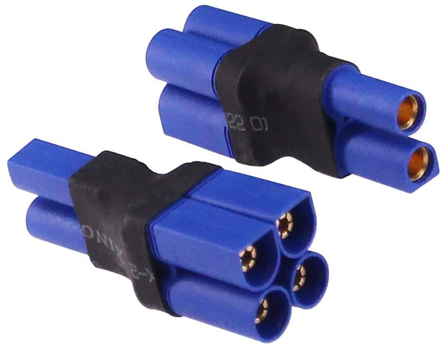 Category: 3 -Connector Adapter in Parallel Male Connector: 2-EC5 Style Female Connector: 1-EC5 Style Quantity: 2pcs Used For: Use Two batteries with same mAh Capacity to double capacity and keep same voltage to EC5 connector on ESC / Charger. Longer Run Times!! IMPORTANT: Must use 2-Packs with same capacity!!!