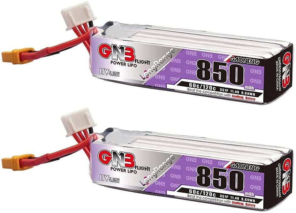 2pcs GNB LiPo Battery 850mAh 3S 11.4V HV 60C 120C Long Range Drone FPV XT30 Long Type