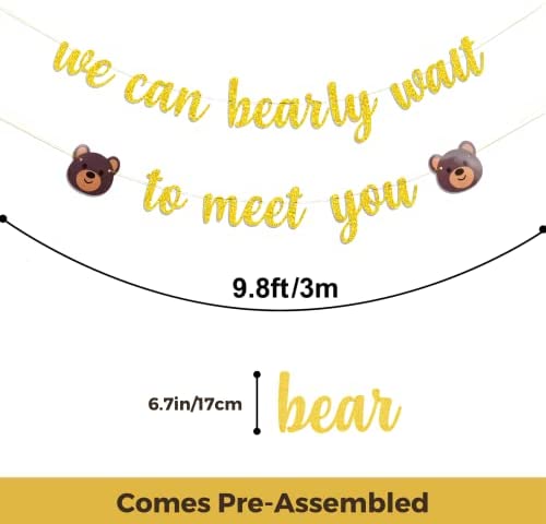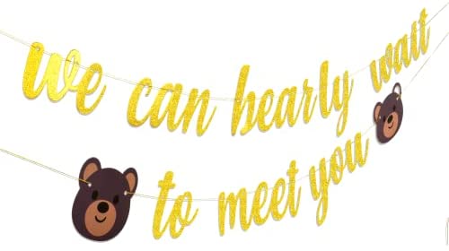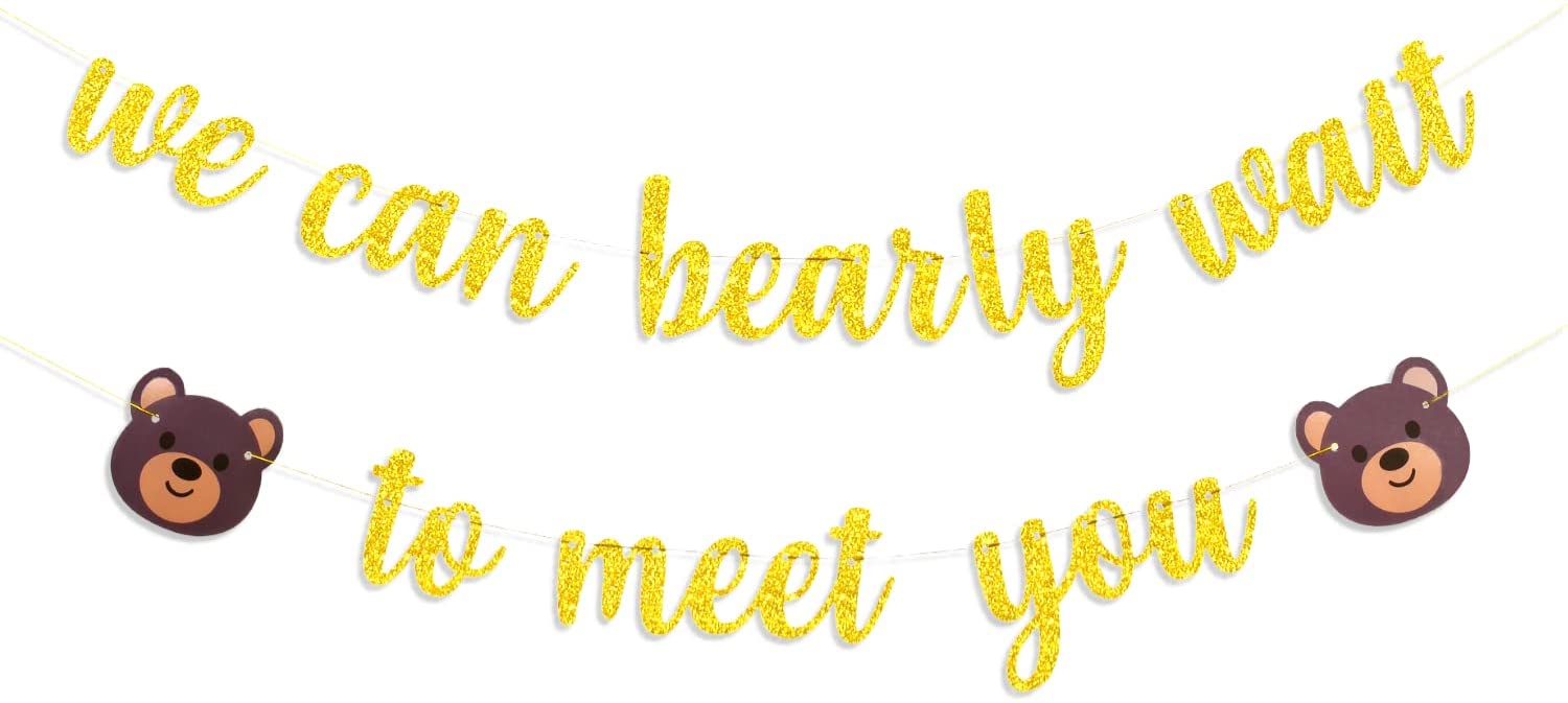 2Pcs Gold Glitter We Can Bearly Wait to Meet You Banner – Teddy Bear Baby Shower Decorations for Boy & Girl – Neutral Woodland Baby Shower Decorations – Bear Themed Baby Shower Decor & Backdrop