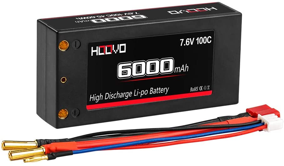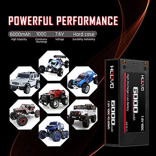 2S 100C 6000mAh 7.6V RC Shorty Lipo Battery High-Voltage Hard Case with Deans T Connector for RC 1/8 1/10 Scale Vehicles Car Trucks Boats(4mm Bullet)