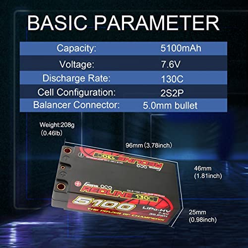 Be the first to review “2S Lipo Battery Redline Series 5100mAh 7.6V 130C 2S2P HardCase HV Shorty Lipo Battery” Cancel reply