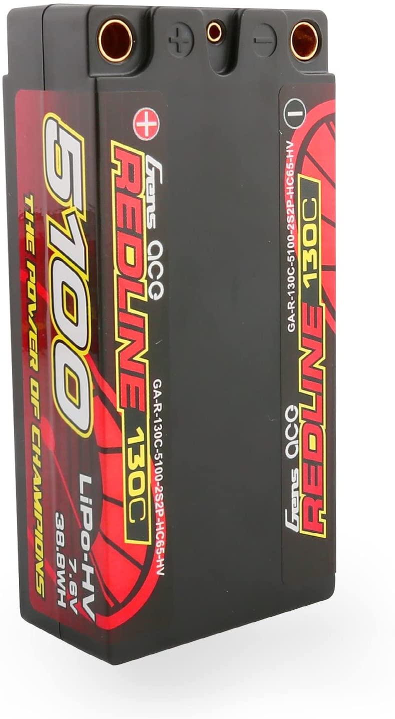 2S Lipo Battery Redline Series 5100mAh 7.6V 130C 2S2P HardCase HV Shorty Lipo Battery