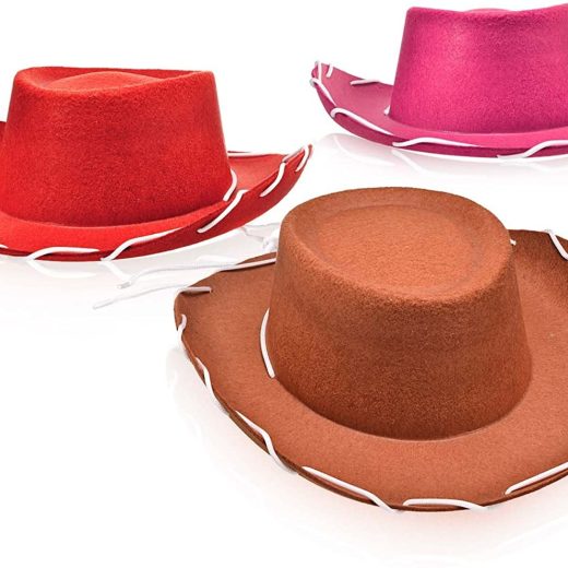 3 Childrens Felt Cowboy Hats in Red, Brown and Pink – One Size Fits Most – Dress Up Like Woody and Jessie