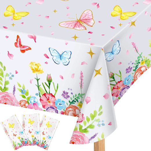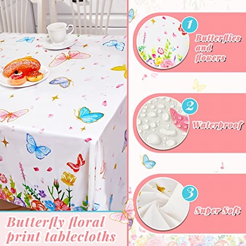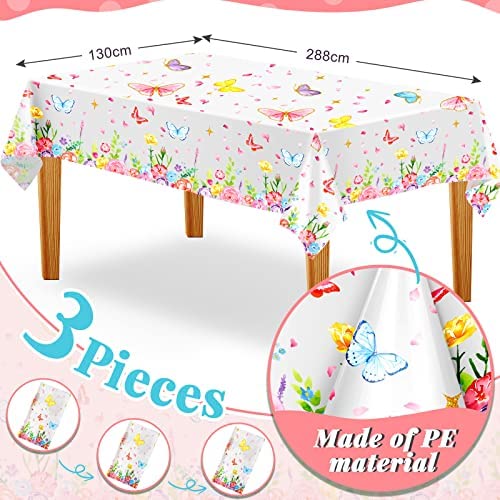 3 Pack Butterfly Tablecloth Flying Butterfly Table Cover Wipeable Decorative Butterfly Floral Table Cover Waterproof Rectangle Tablecloth for Dining Girl Birthday Shower Party Decoration 51×113 Inch