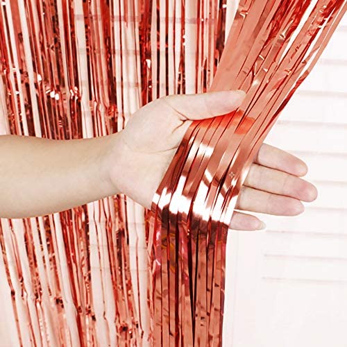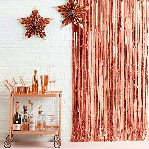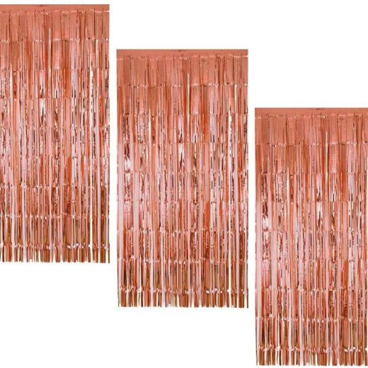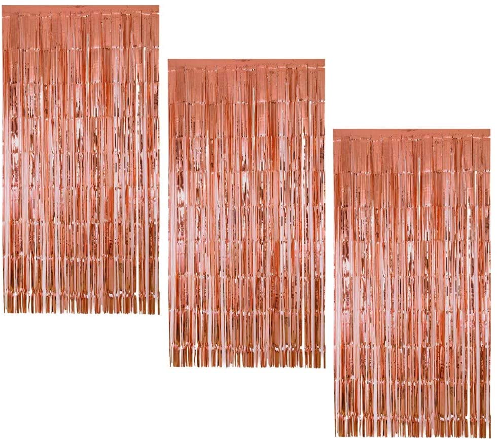 3 Pack Foil Curtains Metallic Fringe Curtains Rose Gold Shimmer Curtain for Party Decorations-Sold by Aye Store