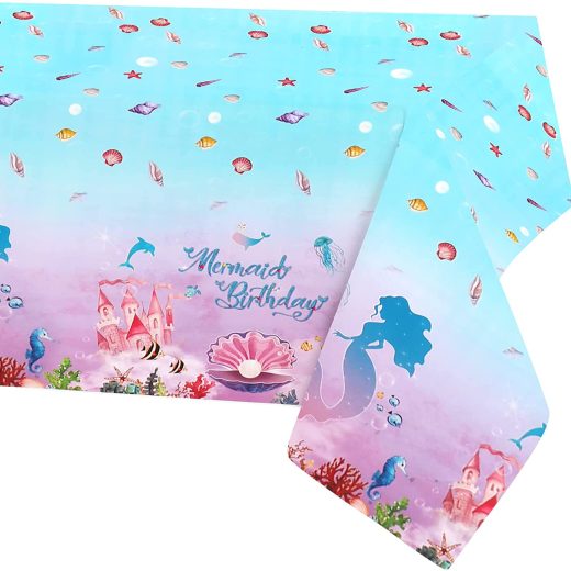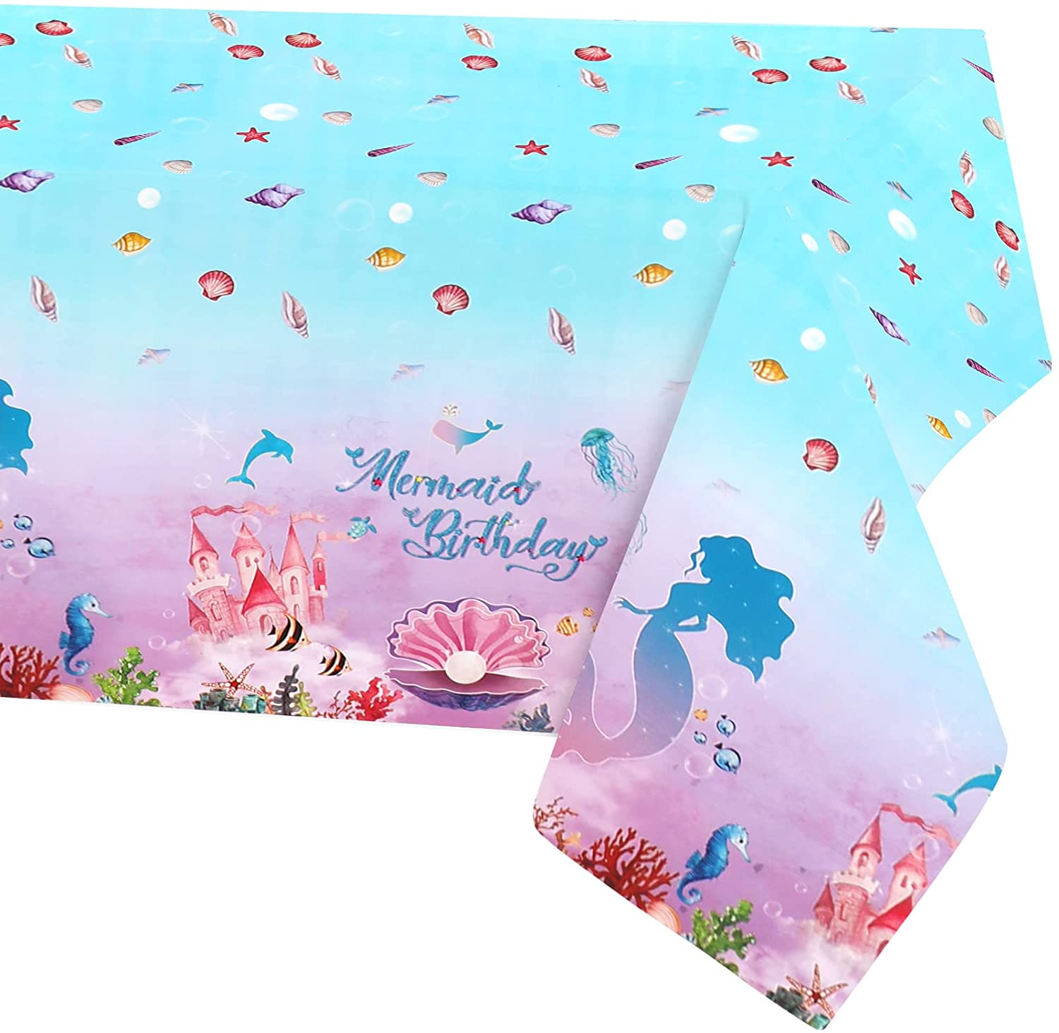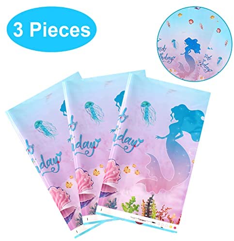 3 Pack Mermaid Tablecloth Mermaid Theme Party Tablecovers, Mermaid Theme Party Supplies Disposable Plastic Table Covers for Girls Kids Birthday Baby Shower Wedding Under The Sea Party Table Decoration