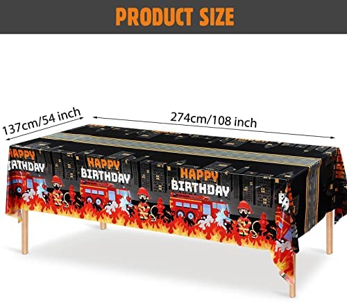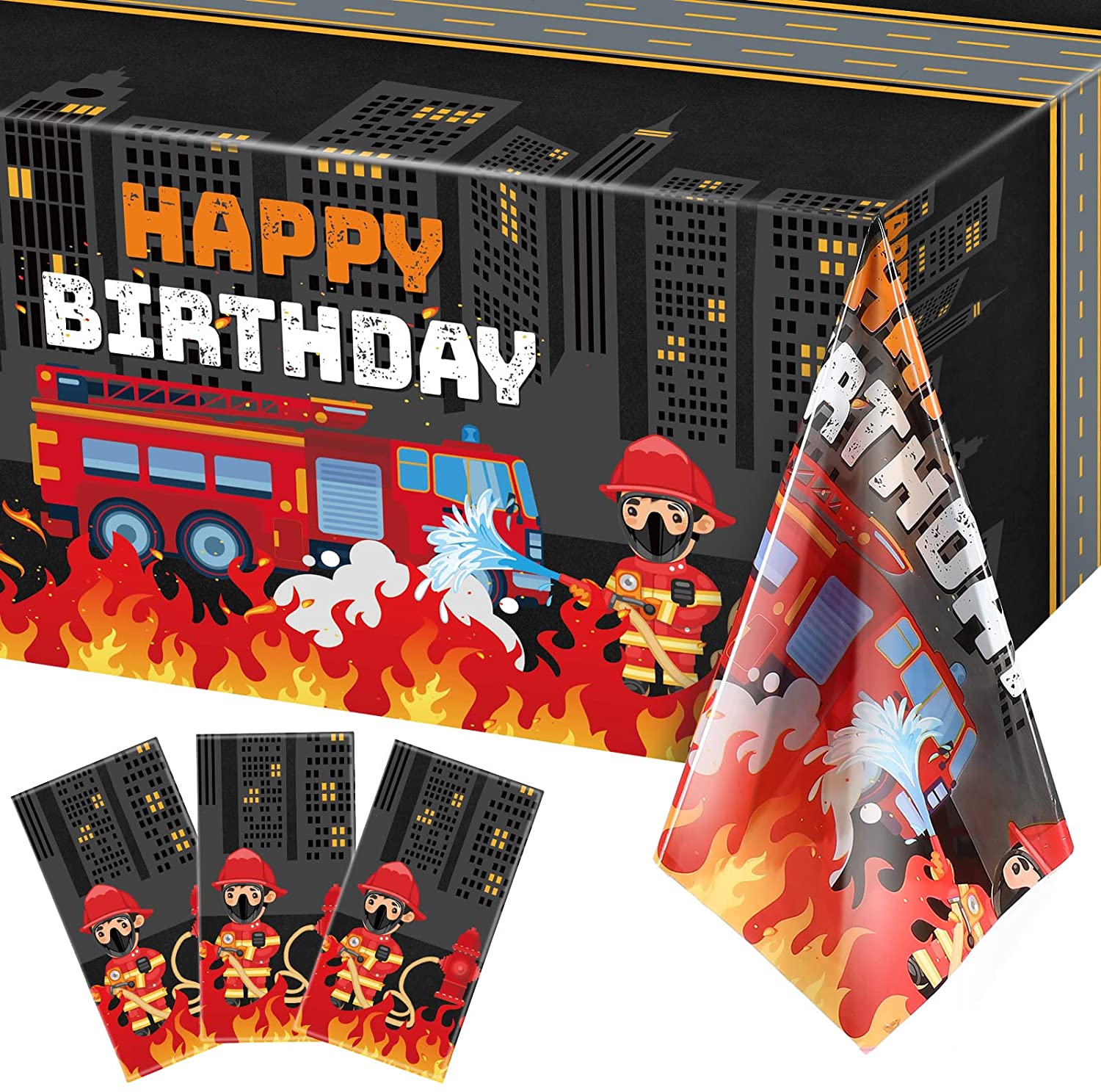 3 Pack Plastic Fire Truck Tablecloths Firefighter Party Tablecloth Fireman Happy Birthday Table Cover Fire Heroes Party Supplies for Firefighting T…