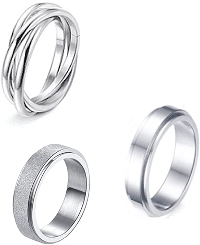 3 PCS Fidget Spinner Ring Stainless Steel Spinner Band Ring Fidget Rings for Women Men Relieving Stress Anxiety Ring Set -Size 10