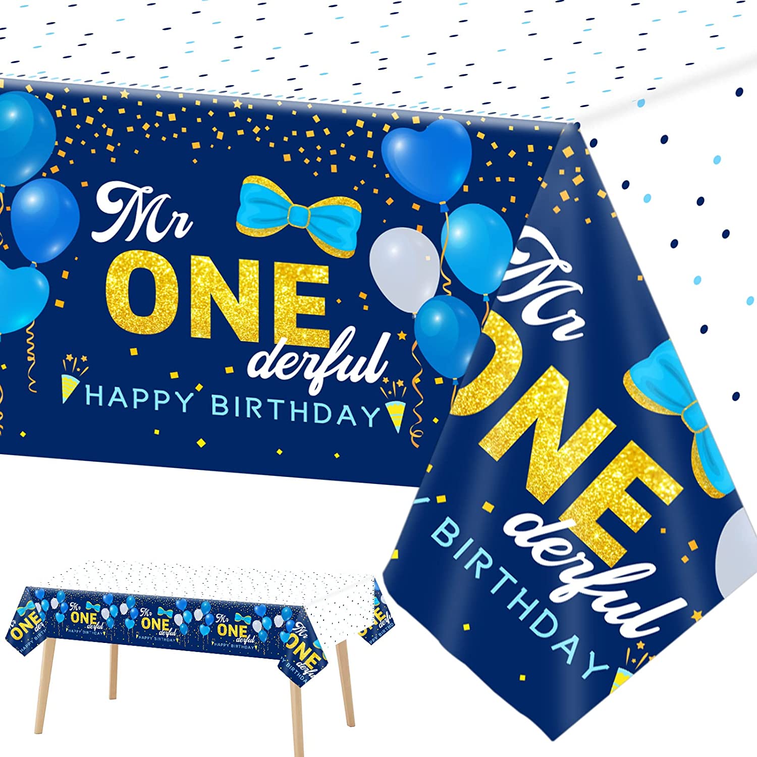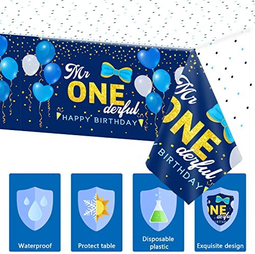 3 Pieces 1st Birthday Plastic Tablecloth Mr Onederful Happy Birthday Party Plastic Table Covers for Boy 1st Theme Birthday Party Decorations Supplies 54X108inch Features: Specification: Material: plastic Size: approx 54 X 108inch Color: as pictures shown Package included: 3 x Mr onederful party teble clothes Feature: reusable , waterproof, sturdy, non-toxic and no odd smell