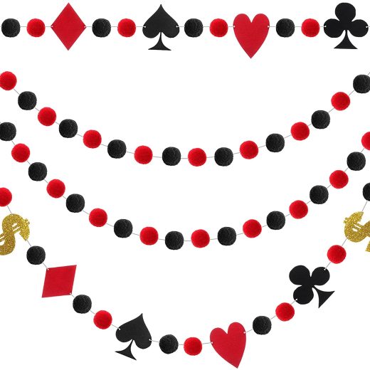 3 Pieces Casino Party Decoration Supplies Las Vegas Theme Banner Poker Themed Pom Pom Ball Garlands Decoration Casino Night Garlands for Game Theme…