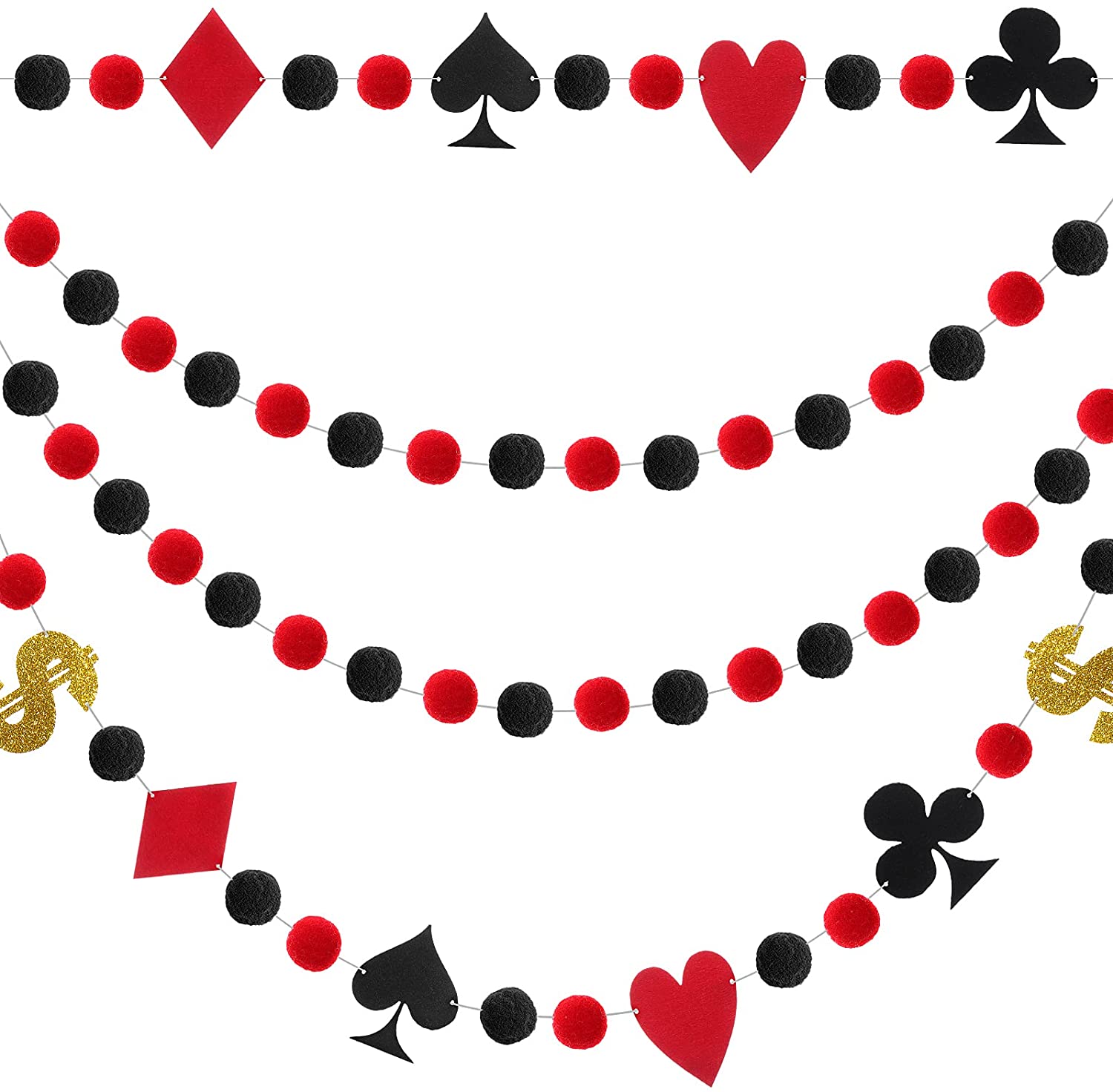 3 Pieces Casino Party Decoration Supplies Las Vegas Theme Banner Poker Themed Pom Pom Ball Garlands Decoration Casino Night Garlands for Game Theme Party, Baby Shower, Birthday Party Supplies