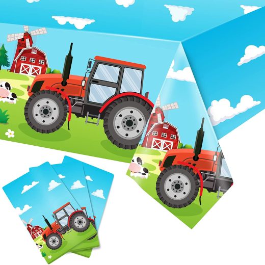 3 Pieces Green Tractor Tablecloth for Tractor Birthday Party Decorations Tractor Time Party Table Cover Plastic Rectangle Table Decors for Baby Shower Farm Themed Birthday Party Supplies 54 x 108 Inch