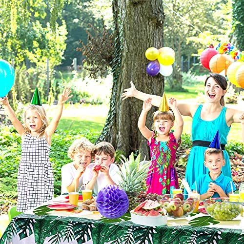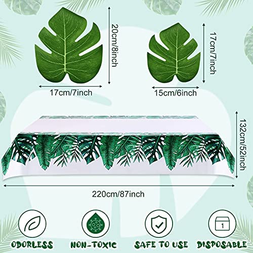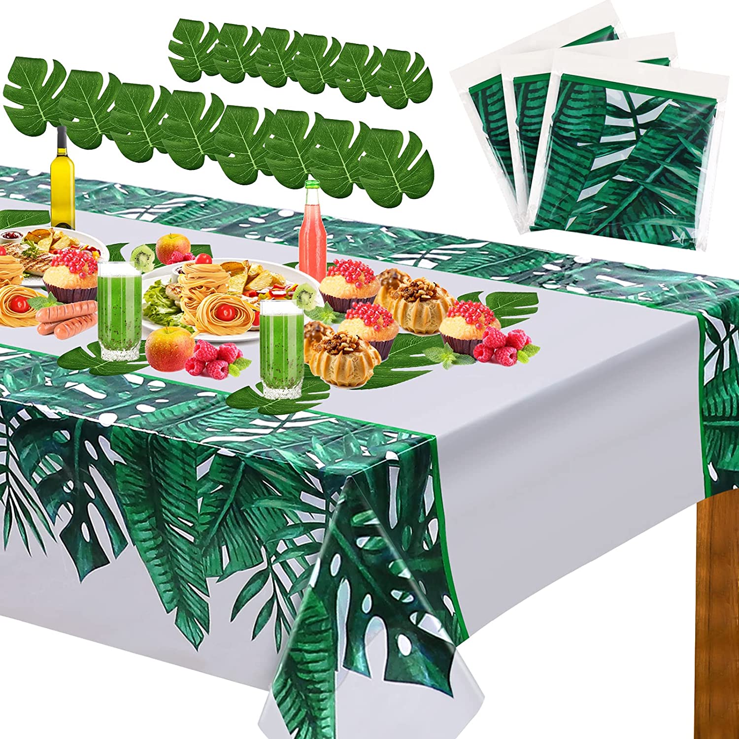 3 Pieces Hawaiian Luau Tablecloth Tropical Palm Leaf Table Covers Green Palm Leaves Tablecloths Disposable Plastic Rectangular Table Leaves 24 Jungle Leaves for Birthday Baby Shower Party Supplies
