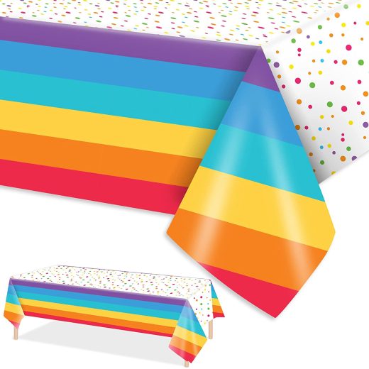 3 Pieces Rainbow Tablecovers Rainbow Party Plastic Tableclothes for Polka Dot Rainbow Theme Party Decorations Supplies 54X108inch Features: Specification: Material: plastic Size: approx 54 X 108inch Color: as pictures shown Package included: 3 x rainbow party teble clothes Feature: reusable , waterproof, sturdy, non-toxic and no odd smell