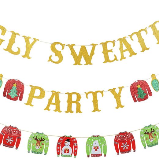 What you will get: 1pcs gold glittery ugly sweater party banner,1pcs ugly christmas sweater banner,perfect for ugly christmas sweater party decorat…