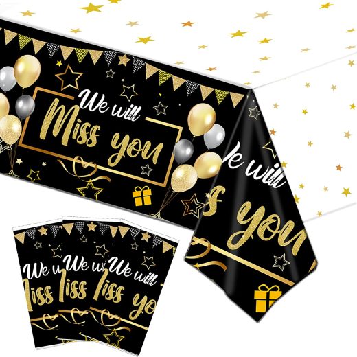 3 Pieces We Will Miss You Tablecloth,Going Away Party Decorations Retirement Themed Table Cover Disposable Plastic Table Cloth for Graduation Farewell Anniversary Party Supplies(Black, Gold)