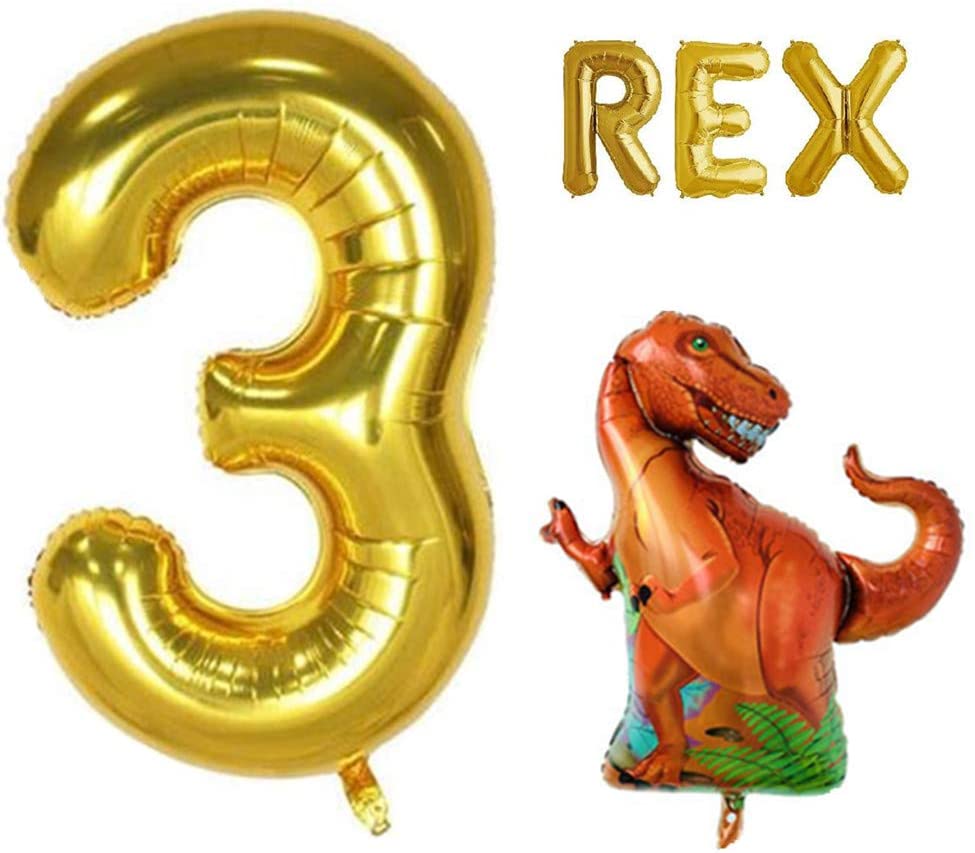 3 Rex Foil Letter Balloons with Dinosaur Balloon for Kids Birthday Party, Gold