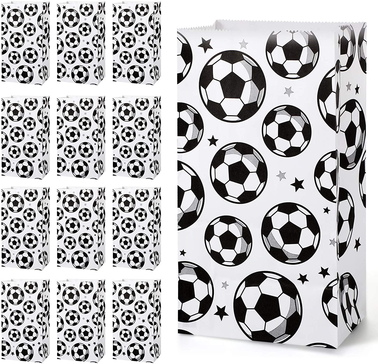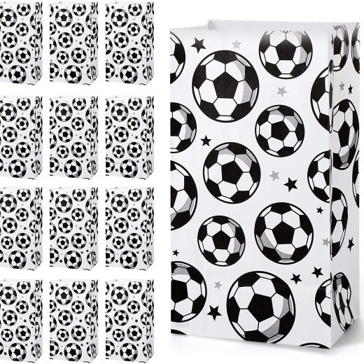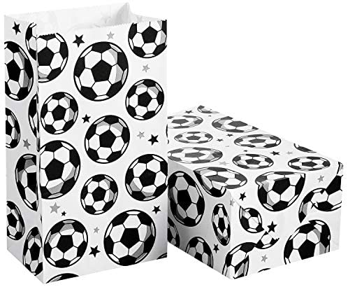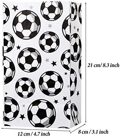What you will get: 30 pieces soccer party treat bags, double side design with soccer and star print patterns, enough amount for you to complete football theme party candy serving Material and size: these soccer goodie bags are made of quality thick white kraft paper, the size of each one is 8.3 x 4.7 x 3.2 inch/ 21 x 12 x 8 cm Design for soccer party supplies: designed with soccer and star print pattern, which can add football party atmosphere, catch both children and adults attention, cater to the interests and taste of children Easy to use: ready to use for party favors, dont need any other tools, great as a small paper gift bag to give out party favors at your soccer game party and give out memorable small gifts to your guests Wide application : suitable for football soccer theme party, kids birthday party, baby shower or other sport themed party, you can use these soccer gift bags to pack biscuits, snacks, candy, donuts, small gifts, etc.