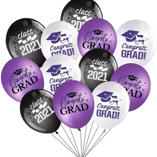 30 Pieces 12 Inch Graduation Party Latex Balloons Class of Party Decoration Party Balloons for Graduation Party Supplies, Graduation Decorations Indoor/Outdoor (2021 Purple, Black and White)