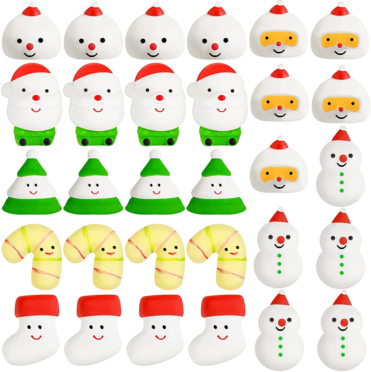 30 Pieces Christmas Mochi Squishy Toy Santa Claus Stocking Snowman Christmas Tree Snowball Patterns Christmas Stress Toys for Girls Boys Christmas Stocking Stuffers Party Favors
