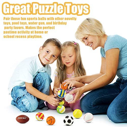 Abundant quantity: this set includes 30 pieces in total, 6 different kinds of sports balls styles, which come with 5 basketballs, 5 footballs, 5 baseballs, 5 soccers, 5 tennis and 5 volleyballs, large quantity to meet your various needs; The diameter of ball is 2.5 inch; They are good for sports theme party; You can also share with family and friends Cute foam balls: these mini stress balls can be applied to relieve anxiety and stress; They are also nice birthday party supplies; With vivid sports themed designs, these stress balls will appeal to boys, girls and adult alike while improving grip strength, dexterity, mobility as well as fine and gross motor skills Fun toys: the foam balls are soft enough for boys and girls to play battles; Pair these fun sports balls with other novelty toys or pool toys, readily making the nice pastime activity at home or school recess playtime; A fun collection of soft sports balls set is nice for boys and girls, letting these little hands to enjoy their favorite sports games and daily activities Wide applications: these foam ball toys are suitable as beach party decorations, bathtub toys, and beach toys for boys and girls; They are great for teenagers party, fitting for adults to relieve stress, and they can be applied to party favors, a great school carnival prize for teachers and students Thoughtful gift: these foam sports balls are nice to be as birthday goodie bag stuffers, pool party decorations, pinatas fillers, and classroom gift exchange; Its also a nicet set for sport enthusiast needs; Therefore, you can give them as gifts to your friends and family on the birthday or other festivals