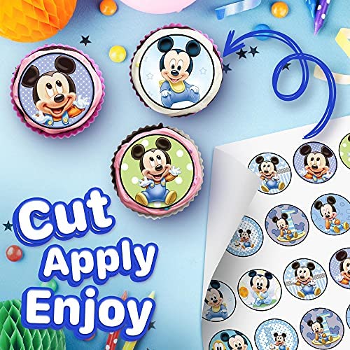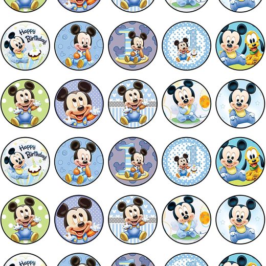 30 x Edible Cupcake Toppers Themed of Baby Mickey Mouse Collection of Edible Cake Decorations | Uncut Edible on Wafer Sheet